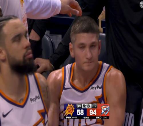 当时这个动作到底有多狠?格雷森阿伦先给了切特脖子一肘子,又推了他一把,连旁边的亚历山大都看呆了,这是真的打不过球只能打人。太阳也是有点急,被对方这么羞辱,球员们干脆选择用这种斗殴打架的方式,自己申请退场。毕竟三节之后,自己的球队110:72落后了38分,此时继续留着,只能说是让自己难堪。